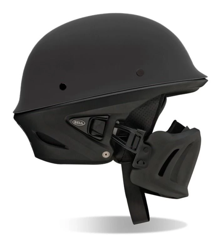 If simply riding a motorcycle is not intimidating enough, bust out your inner Bane by donning the Bell Rogue. The Rogue has the look of a half-helmet yet gives you the added protection and comfort of a ¾, and the adjustable and removable muzzle, not only puts the fear of god into cagers, but protects your face from road debris and weather. The lightweight composite shell and speaker compatible comfortable liner provide superior riding comfort and convenience. The Rogue gives riders all the features of similar touring helmets while retaining an edgy and stylish look.