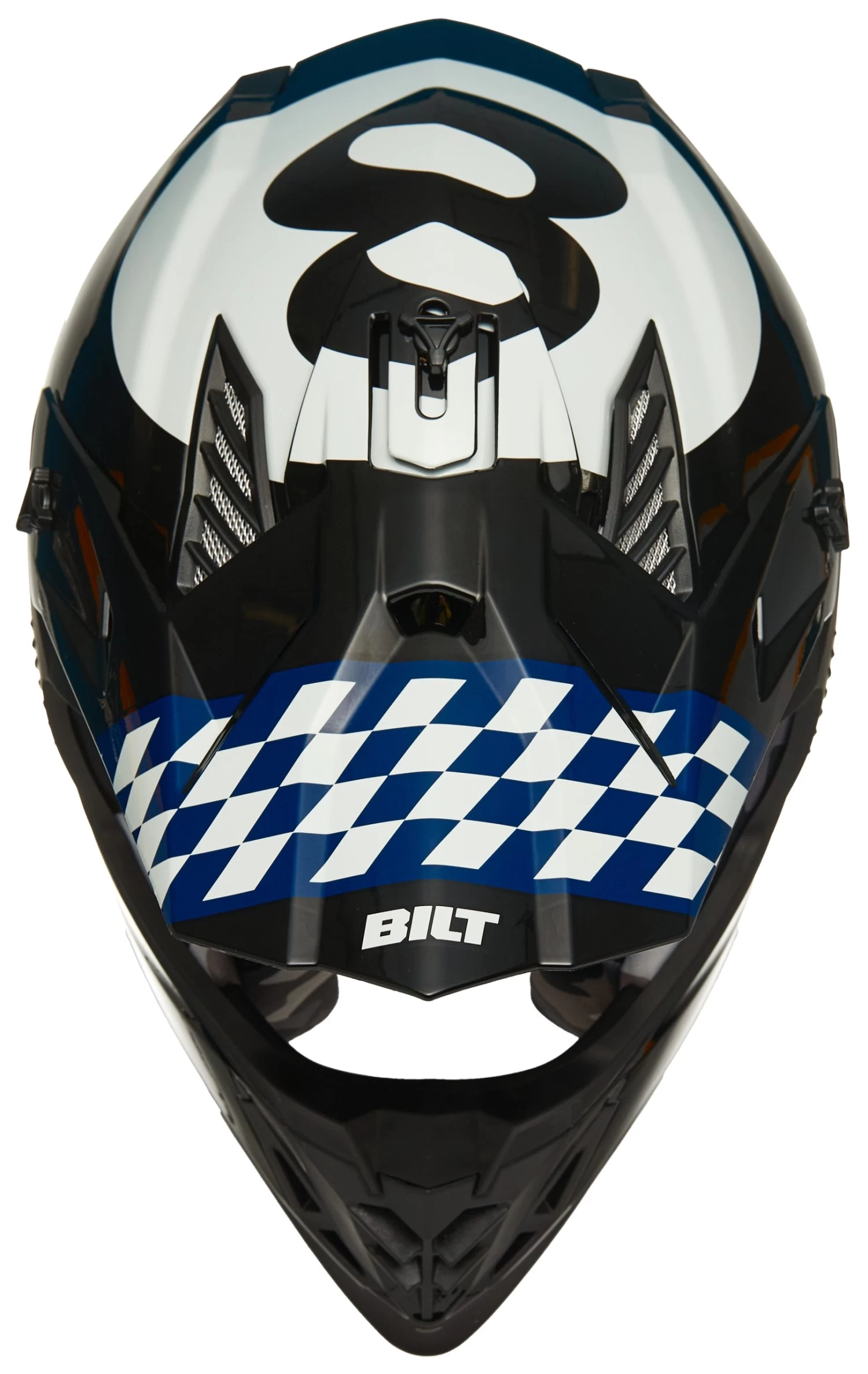 The BILT Lux Sneaky Pete Helmet is a high performance dirt helmet at a winning price. The Lux Sneaky Pete Helmet uses an injection molded ABS shell that is wrapped around a ventilated dual-density EPS liner. Oversized intake vents at the helmet’s chin bar and crown are matched with exhaust ports at the rear. The liner and cheek pads receive their own unique graphic treatment and are uniquely engineered for comfort and airflow – keeping you cool and focused. The aero-tuned sun peak is fully removable, and the Lux receives both DOT and ECE safety certifications.