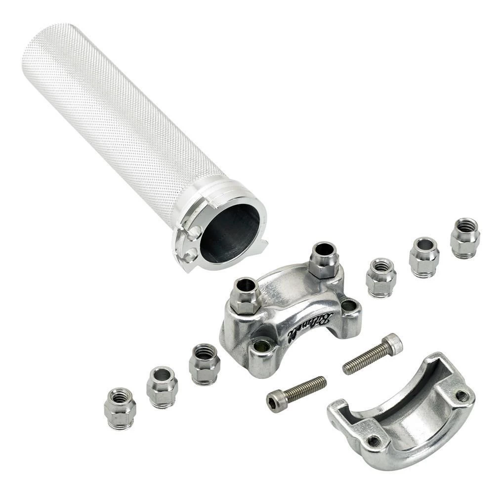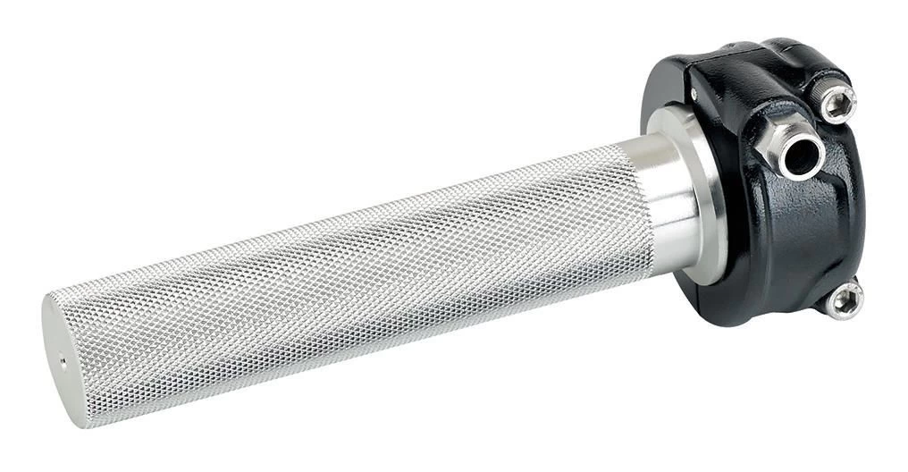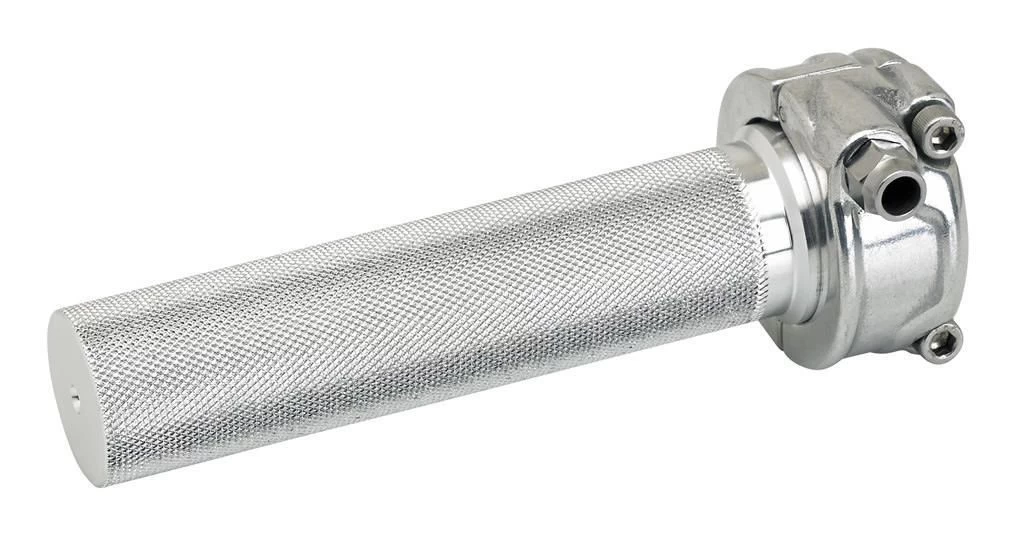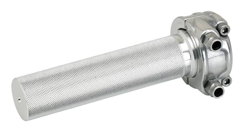 - Knurled alloy throttle tube accepts aftermarket rubber grips