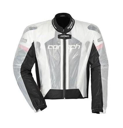 The Cortech RR Rainsuit Jacket is perfect to throw on when you are at the track and you’re ready to ride through the sprinkles. The clear, waterproof jacket has taped and sealed seams with stretch panels through the arms, back shoulder and sides. The back of the jacket is cut to fit a wide range of speed humps and specifically any Cortech speed hump. Keep your expensive race jacket clean and dry with the Cortech Road Race Rainsuit Jacket.