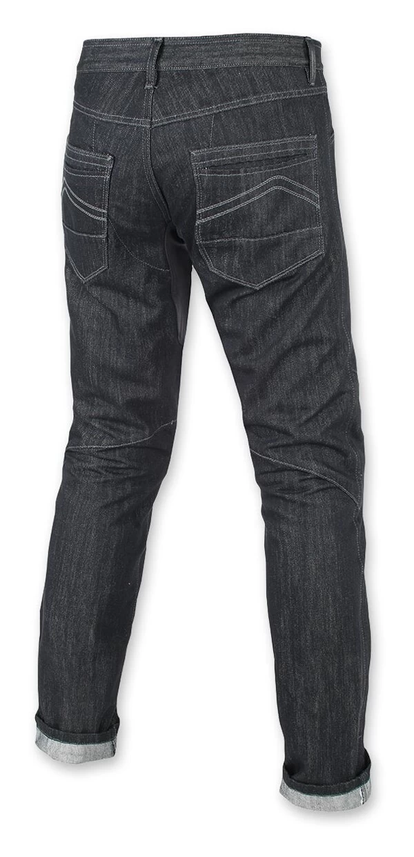 Dainese’s top riding pants offer incredible protection for a jean thanks to the fabric woven with aramid fiber yarns (heat resistant and synthetic fibers). Comes with ridged protection at the knee but also Pro-Shape soft armor at the hips. Dupont Kevlar internal reinforcements, and just like Dainese’s race suits, the Charger features comfortable S1 bi-elastic fabric at the crotch area.