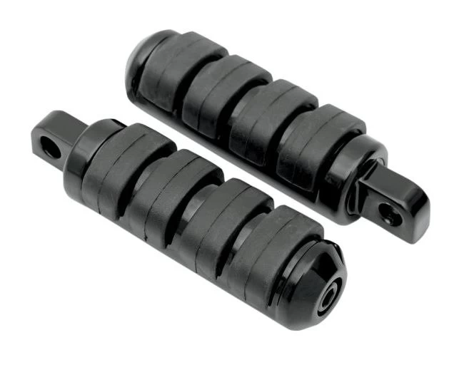 Heavy duty steel footpegs with durable rubber inserts built for comfort by isolating bike and road vibrations. The adjustable end allows the pegs to be rotated and then tightened in any direction.