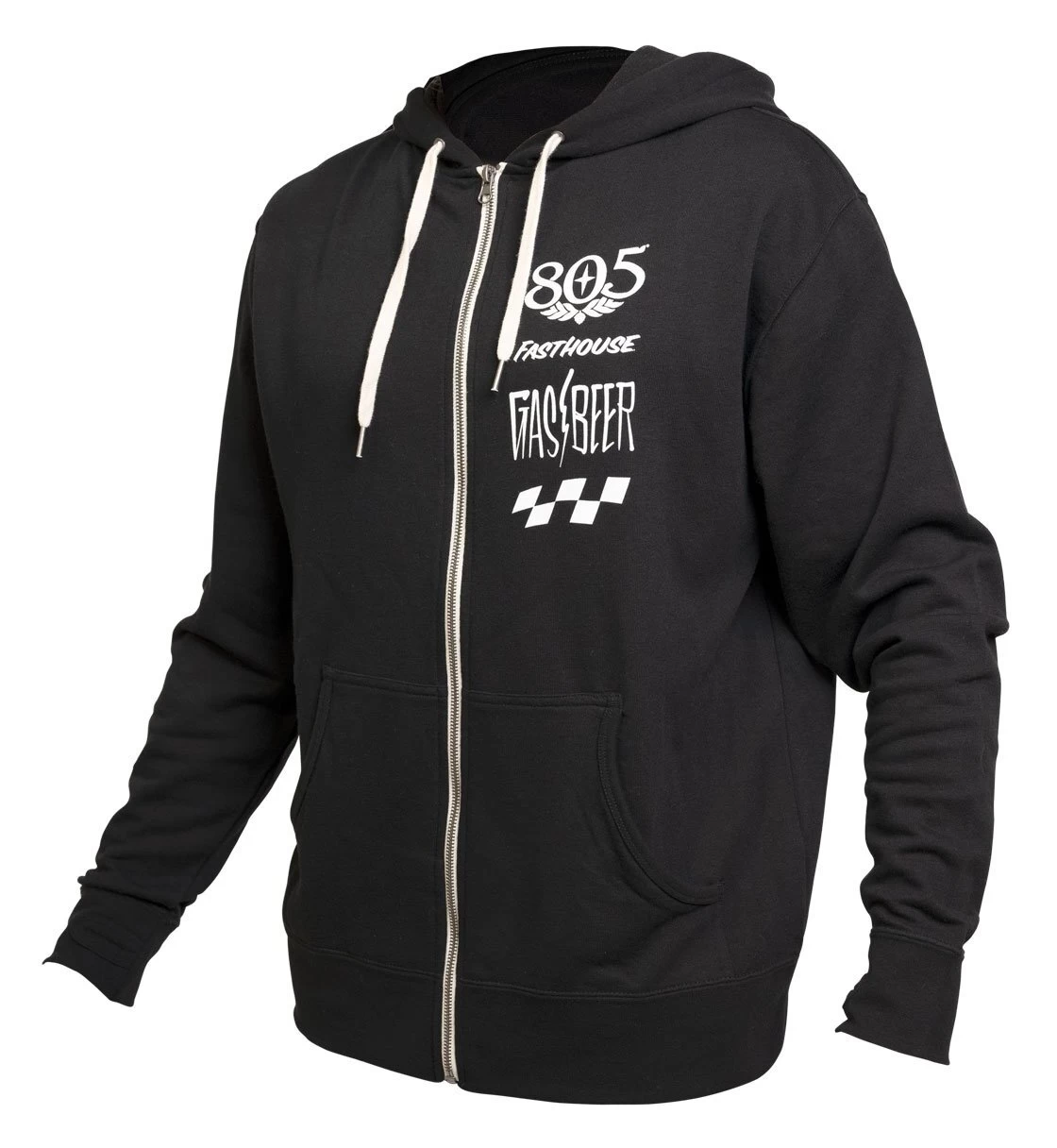 Charge for the finish line with the Gassed Up Hoodie from the Fasthouse x 805 collection. This hoodie is printed on a midweight cotton/poly blended zip-up hoody using plastisol inks for long lasting color and an ultra soft hand feel. It also comes pre-laundered for increased comfort and reduced shrinkage.