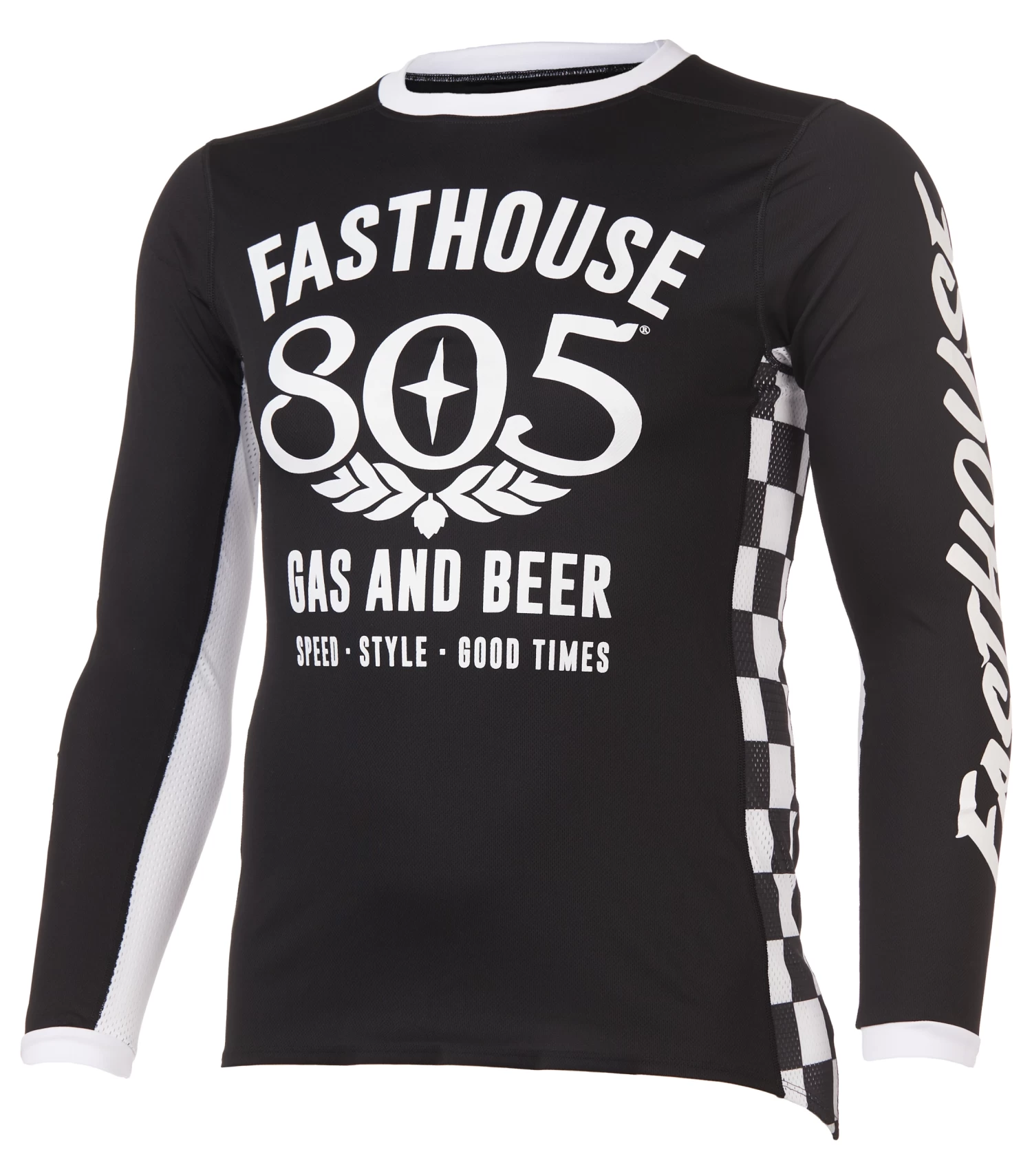 The Fasthouse Grindhouse 805 Jersey is a race day essential for any serious rider. Dyed polyester ensures that colors stay vibrant while an over locked stitching pattern gives extra strength and durability. This keeps the jersey looking as good as the day it was delivered. Moisture wicking fabric keeps riders dry all race and high quality silk screening keeps the graphics on the jersey.