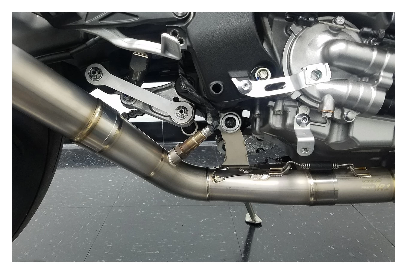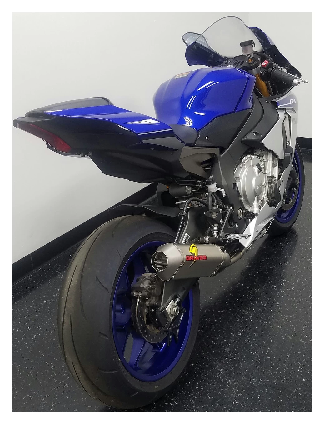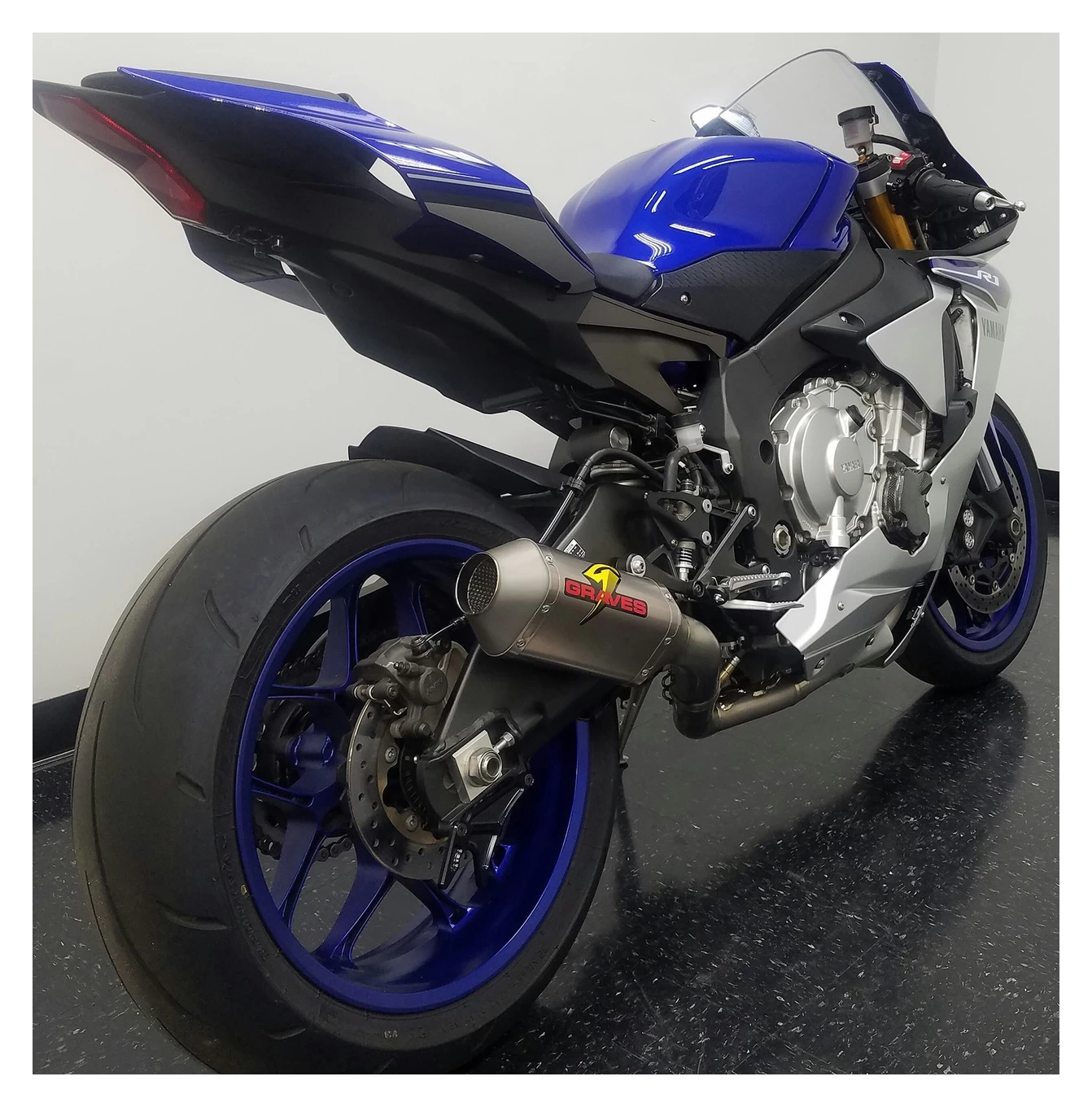 - Diamond shaped muffler design that matches the R1’s design