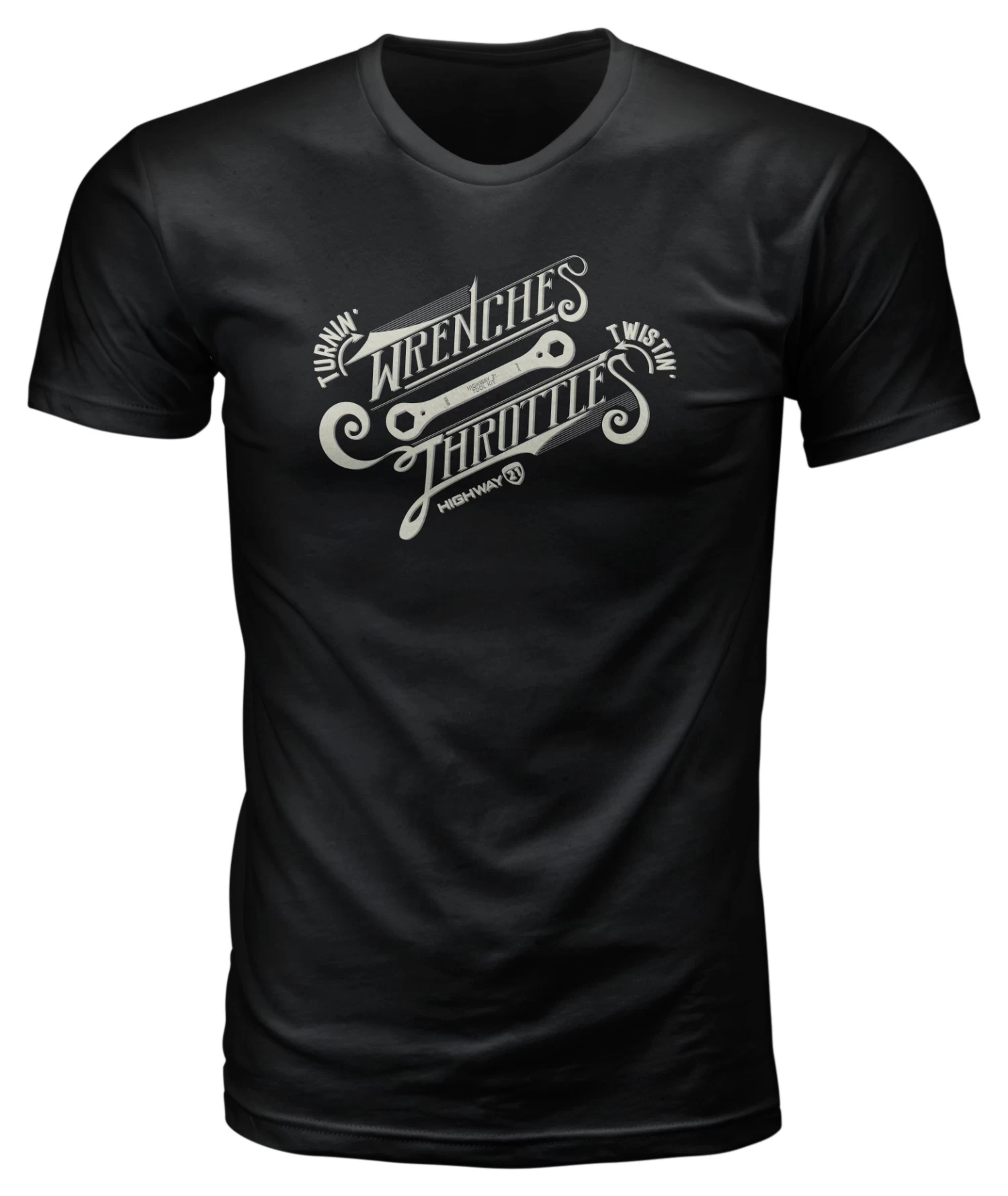 Ride. Wrench. Repeat. The Highway 21 Throttle T-Shirt is a comfortable shirt for wrenching in the garage or cruising on the road.