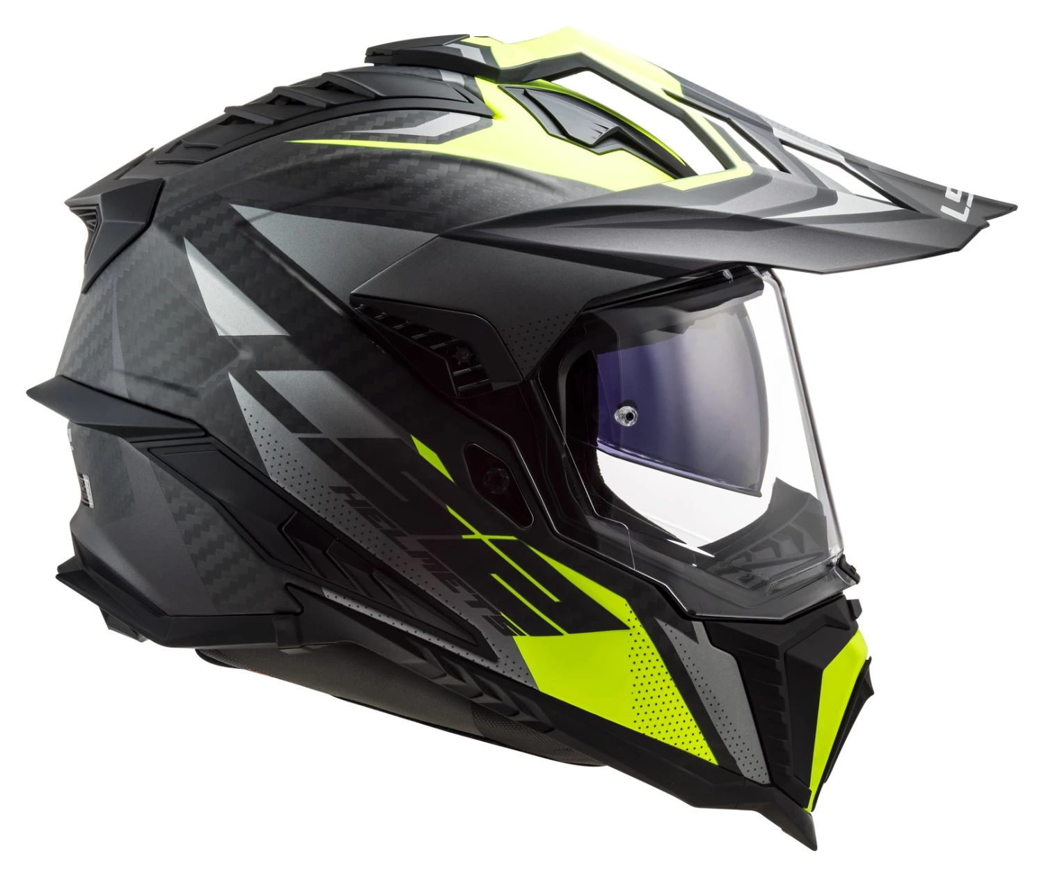 The LS2 Explorer Carbon brings state of the art high performance Carbon Fiber shell technology. Offering a plush, technical fabric interior with 3D laser cut cheek pads for high mileage comfort. The Explorer Carbon features ultra-wide eye ports for maximum vision and a drop-down sunshield. The peak is designed with large ports for maximum air flow. Fully adjustable ventilation helps maintain control over the elements to keep you cool and comfortable.
