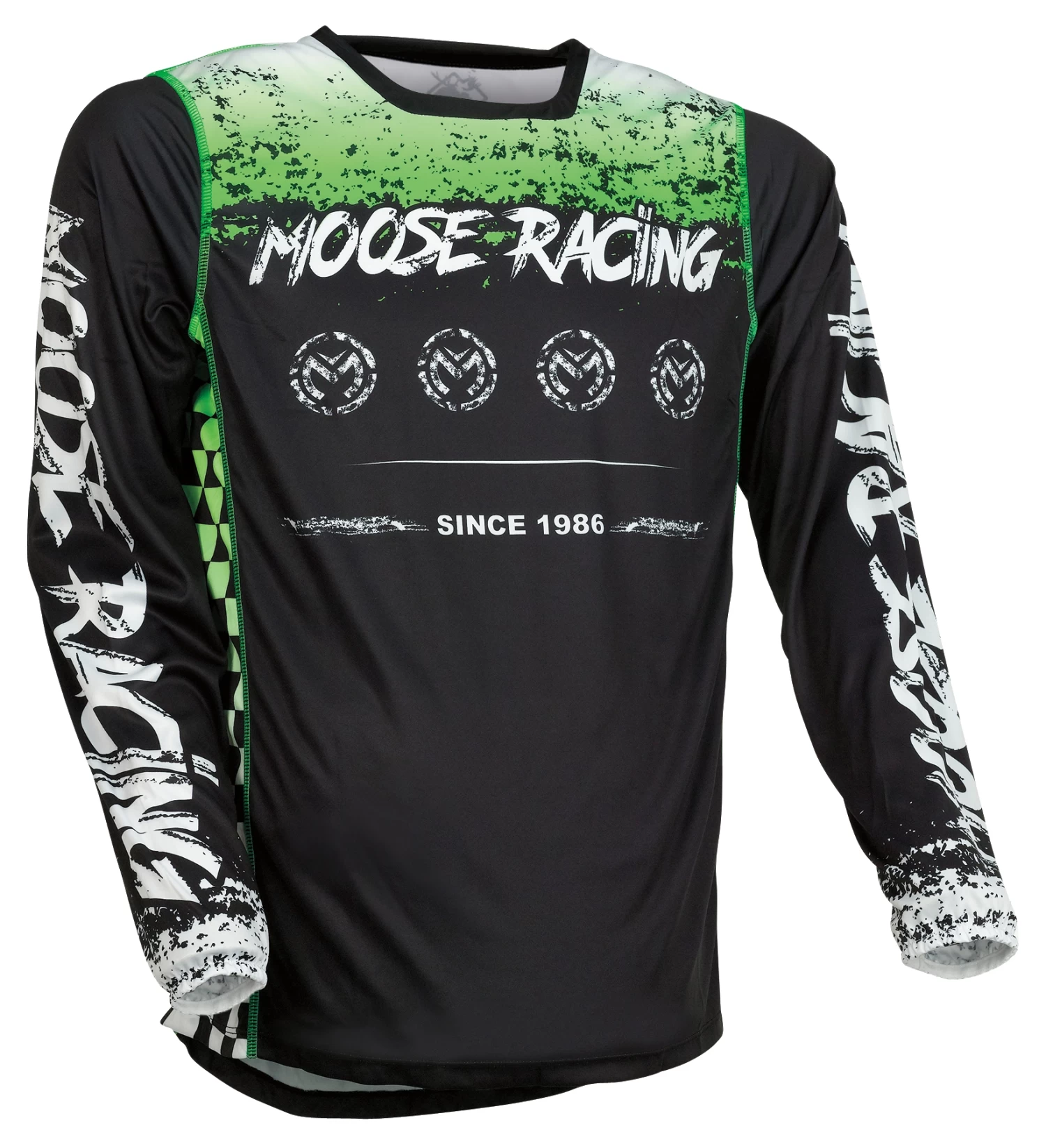 The Moose Racing M1 Jersey is constructed entirely of semi-ventilated stretch polyester, a quick drying fabric that moves moisture away from the skin- helping you stay dry and comfortable even on the longest of days spent at the track / on the trail.