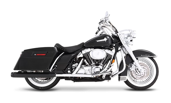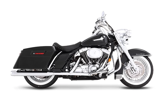 Rinehart Racing mufflers are known worldwide for their distinctive sound and appearance. Rinehart Slip-Ons feature the same race-proven muffler and baffle design as their full-length brethren in an easy-to-install package. Complete the look of your Harley with your choice of mufflers in either chrome or black, finished off with chrome or black end caps.
