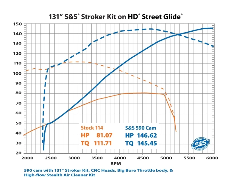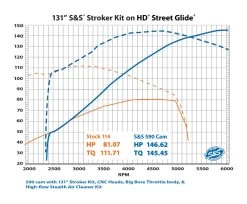 The M8 engine platform is capable of making massive power! It happily accepts big bore kits, stroker cranks and of course high lift cams. This 590 lift cam is designed to work with their 131” stroker kit and other huge bore combinations. Producing massive horsepower especially in the higher RPM range, the 590 is available in gear or chain drive and is specifically for use with monster bores, ported heads and high RPMs, to make maximum horsepower!