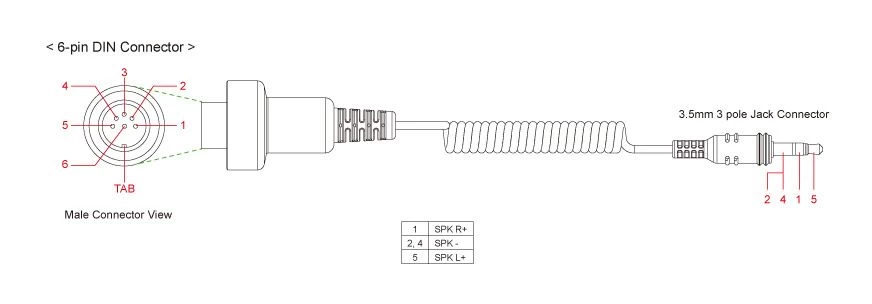 3.5mm stereo jack to 6 pin DIN cable for BMW K1200LT audio systems.