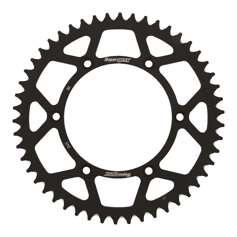 SuperSprox Aluminum Rear Sprockets stand out from the competition thanks to decades of experience supplying OEMs and factory race teams. These long lasting aluminum sprockets utilize a unique tooth design and 6mm thick aluminum (instead of the typical 5.65mm thickness), making them stronger and more resilient than lesser sprockets. The unique design of the sprocket teeth puts more material where you need it and also features grooves between each tooth to prevent build up road debris that can lead to premature chain wear. After machining, each sprocket is surface ground before anodizing, ensuring each one is free from any scratches or machining marks prior to receiving its show stopping finish.