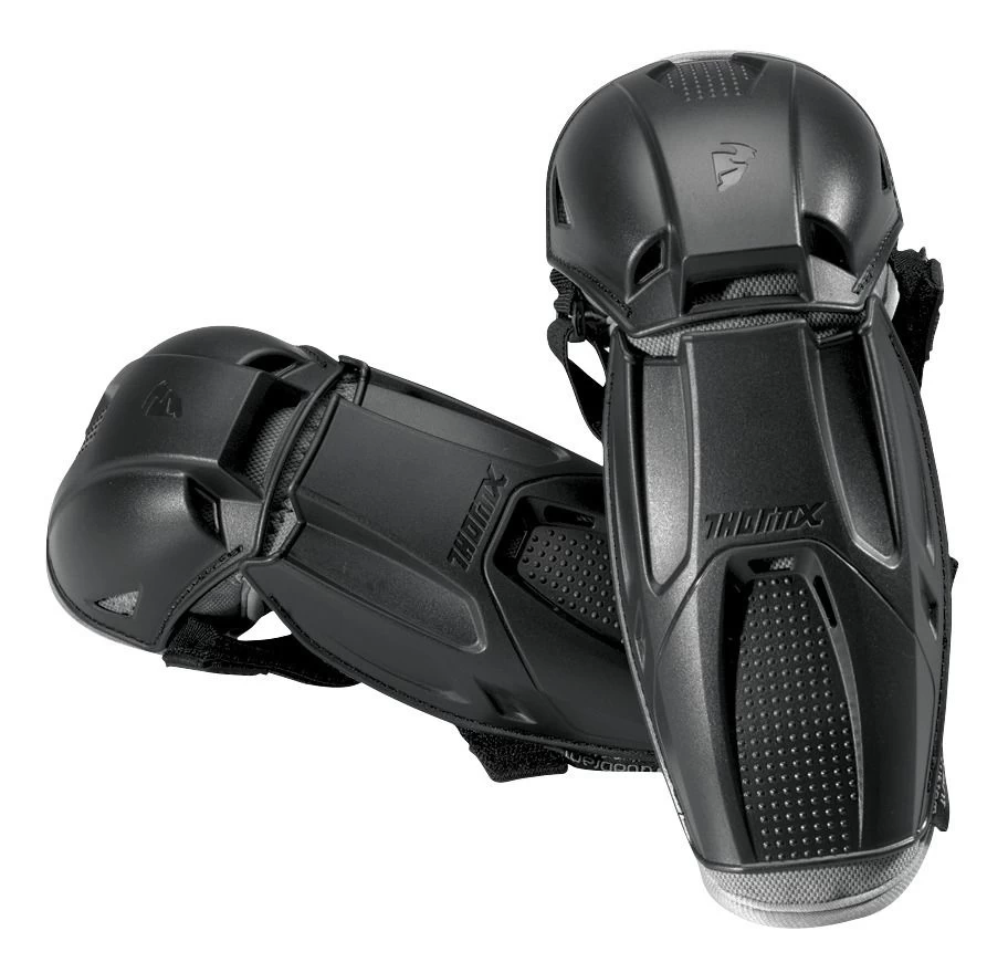 Designed to fit in the riding position, the Thor Quadrant Elbow Guards offer great impact and abrasion coverage with minimal restriction. Built-in extensive vent channels keep things cool while the stitched-in foam elbow donut keeps the guard in place. The completely adjustable closure system and moisture-wicking retention sleeve make the Thor Quadrant elbow guards so comfortable you can run them all day.