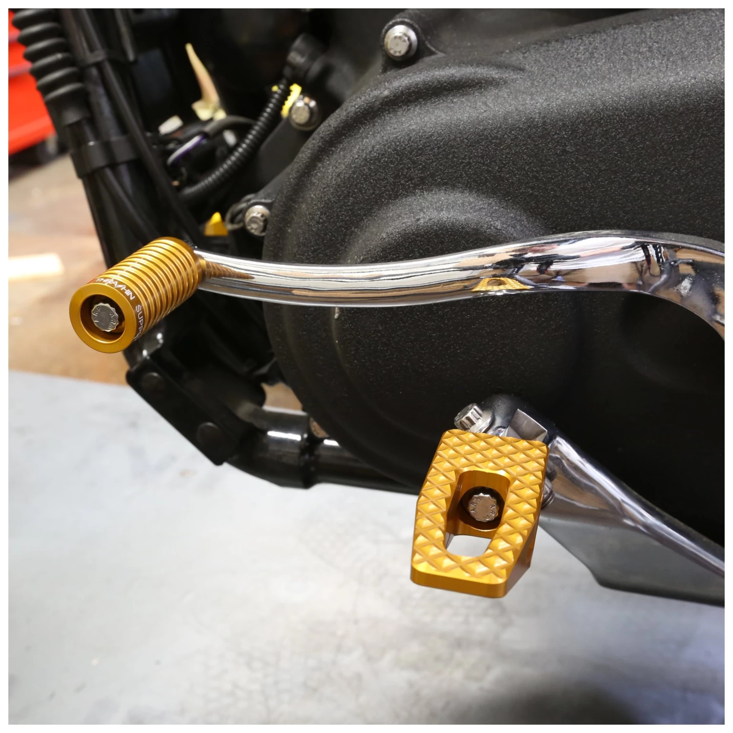 Performance meets style in Thrashin’s 6061 all aluminum P-54 front, rider mount foot pegs.